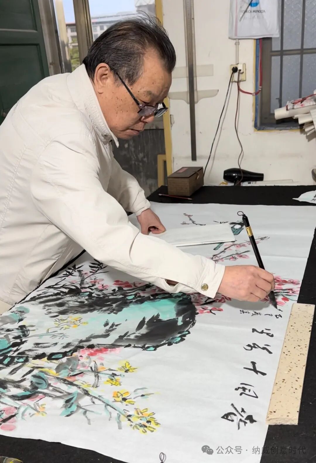 在如此美景之下,三位书画家决定即兴合作,将春光留于纸上。三人笔墨在纸上游走,宛如春天的旋律跃动于画中。每一笔勾勒,都承载着对大地生机的赞颂,每一抹色彩,都映照着心灵深处的感动。